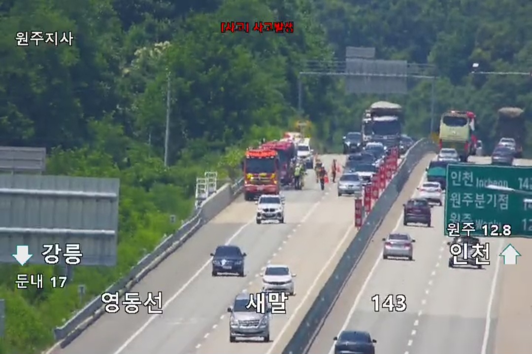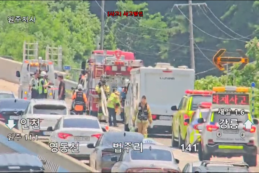 깅릉방향 고속도로에서 차량화재사고가 있었네요