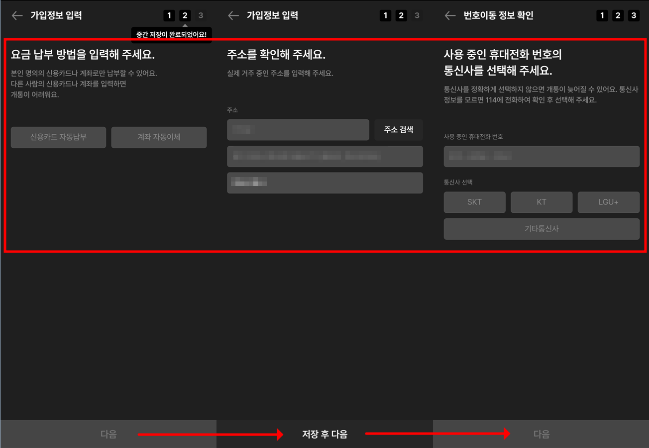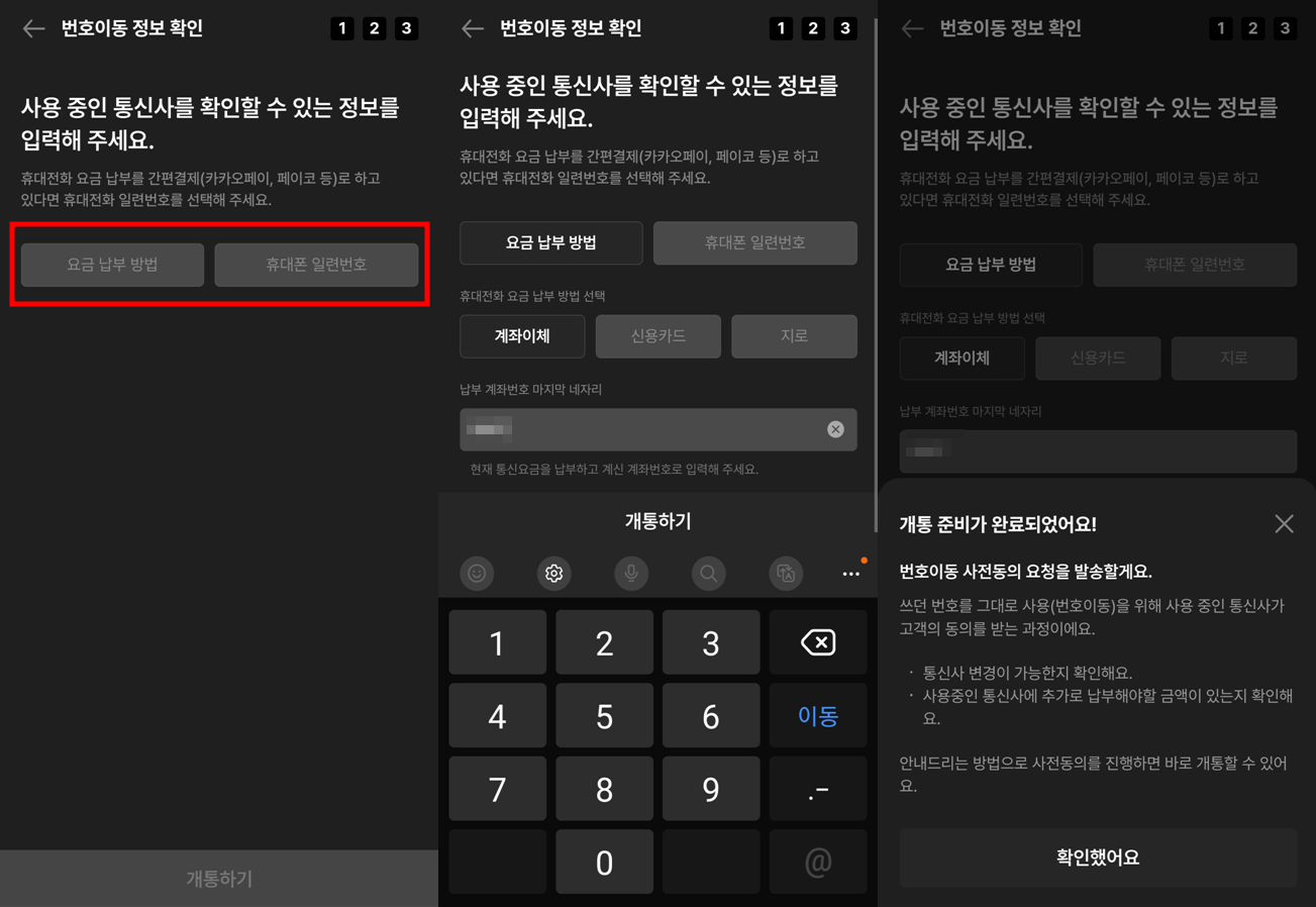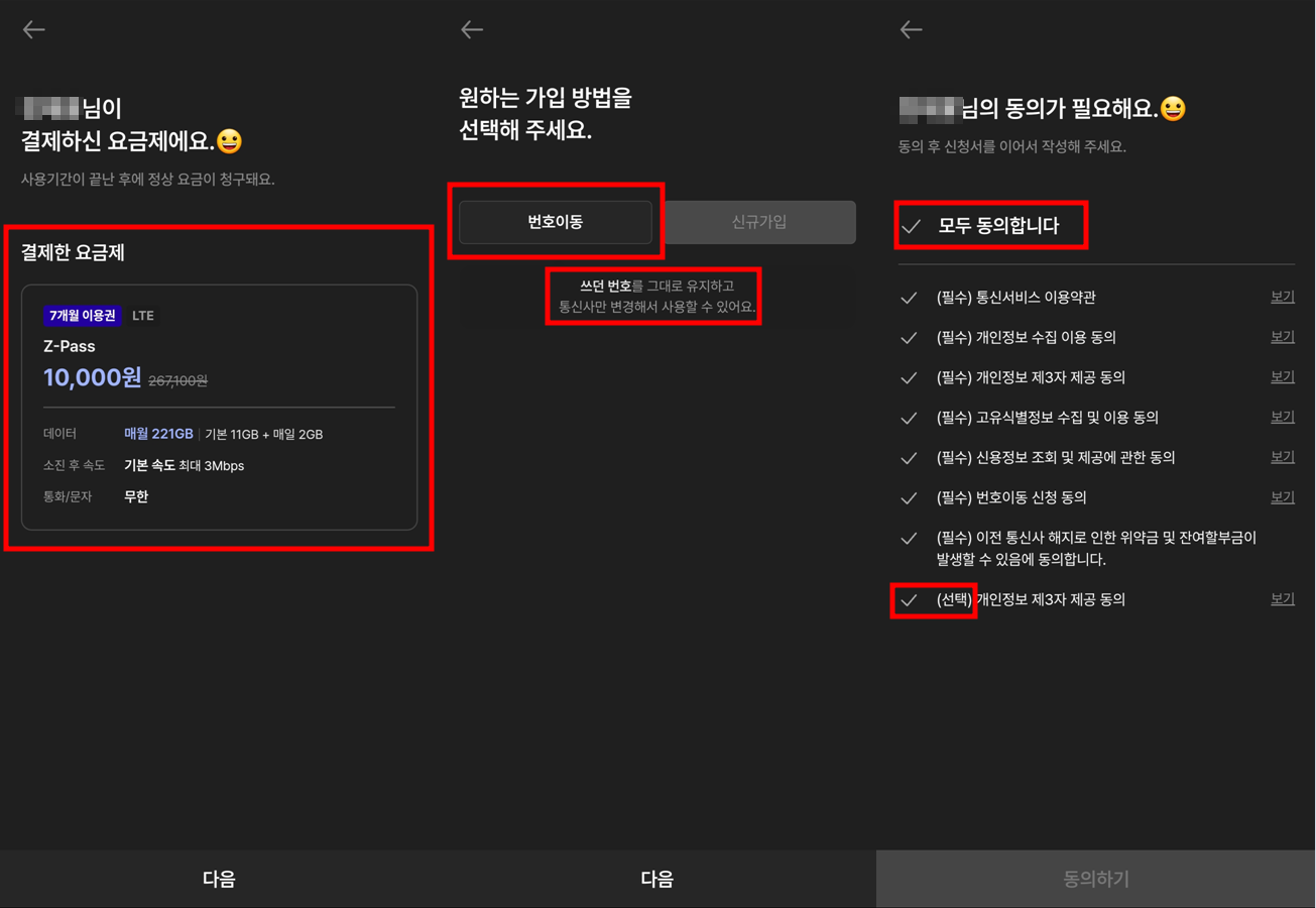 2. 요금제 확인 후 번호이동 / 신규가입 선택 (번호이동으로 진행하였습니다)