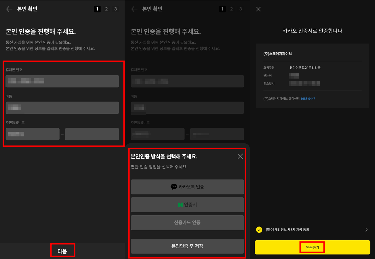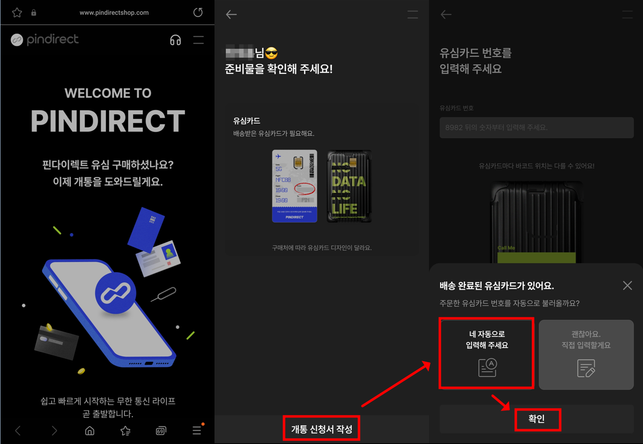 1. 개통신청서를 작성하기위하여 유심카드번호를 입력 (자동으로 입력된다)